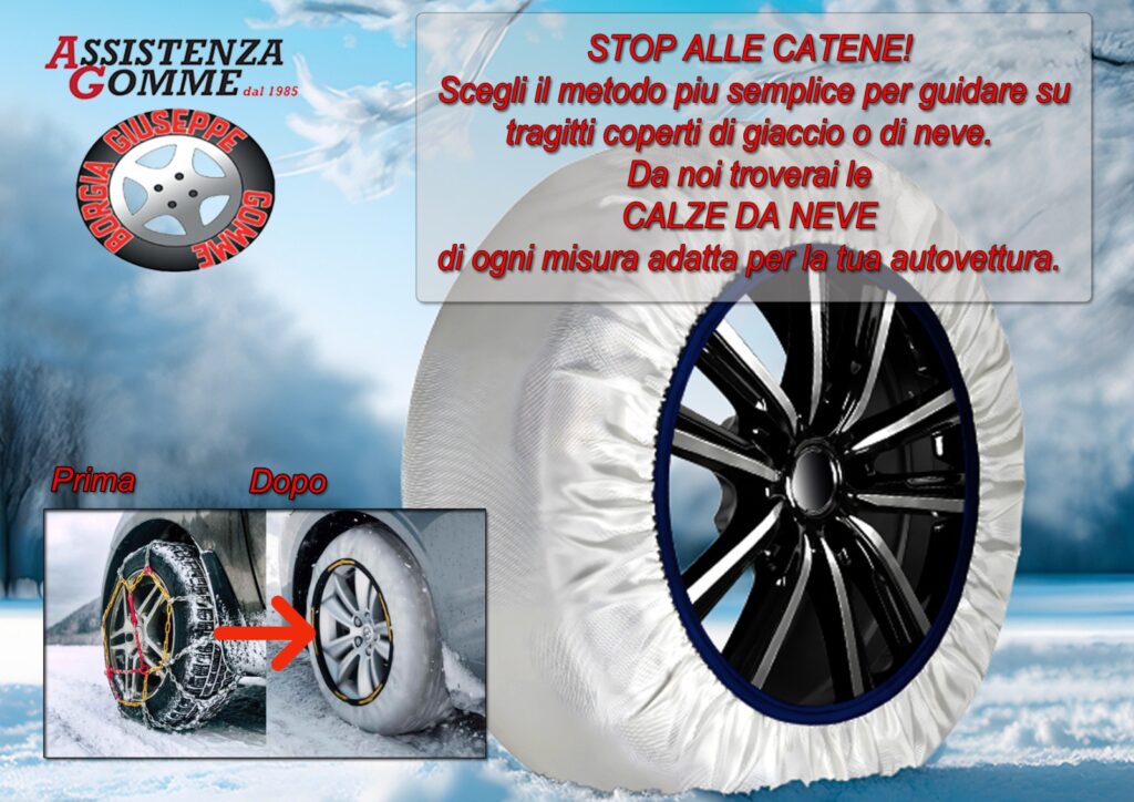 La tua auto, il tuo scooter/moto o il tuo trasporto leggero meritano accessori di qualità per garantire sicurezza e prestazioni ottimali in ogni condizione. Borgia Giuseppe Gomme ti offre non solo servizi impeccabili ma anche una gamma di accessori indispensabili: dalle calze da neve, perfette per affrontare strade innevate con aderenza sicura, alla ruota di scorta, sempre pronta per un imprevisto. Inoltre, puoi contare su di noi per la sostituzione e la programmazione delle valvole elettroniche, essenziali per monitorare e mantenere corretta la pressione degli pneumatici. Accessori che fanno la differenza, per una guida senza pensieri.